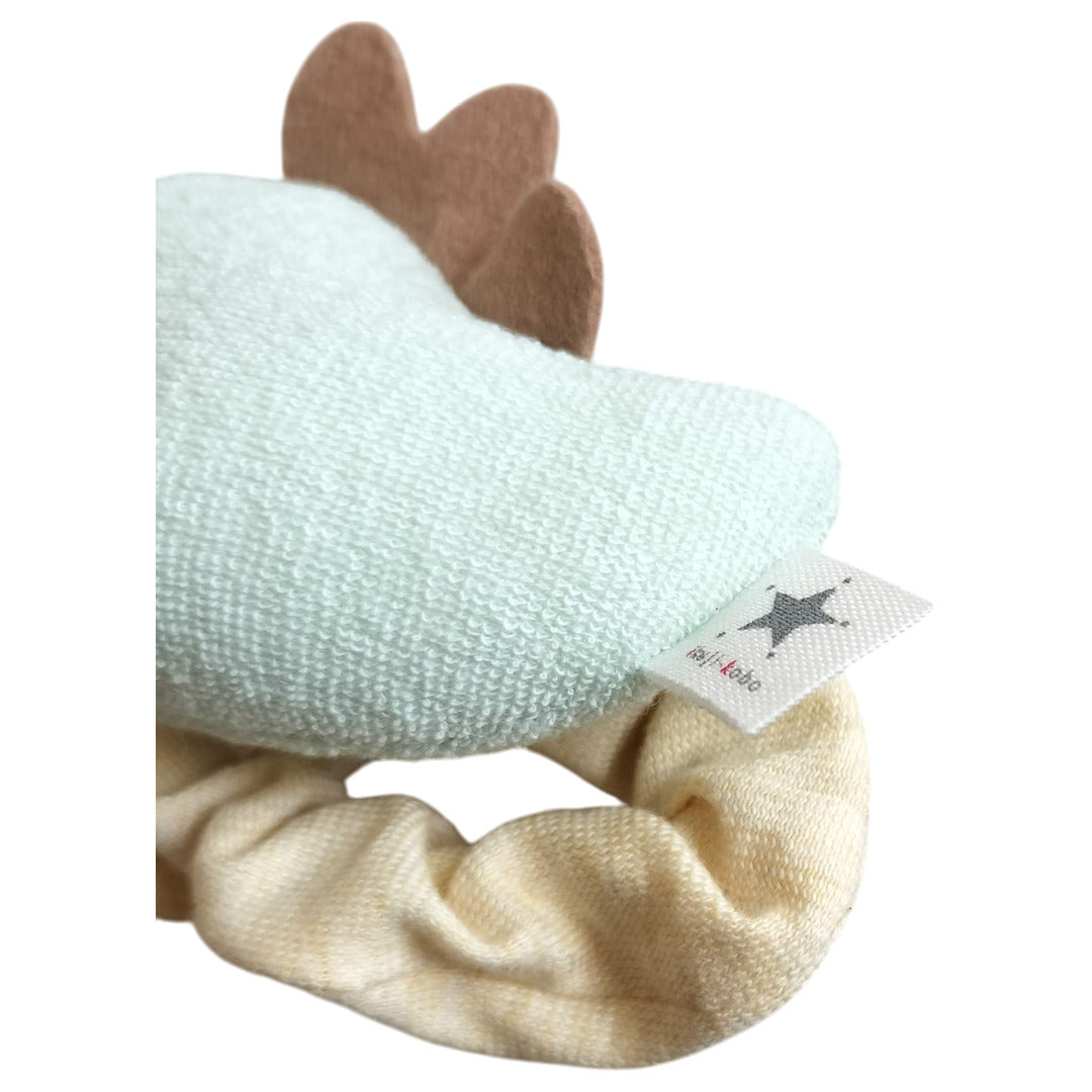 中の鈴が奏でる軽やかな音色は、赤ちゃんの聴覚と好奇心を刺激します。握りやすいリングは、腕の筋肉や脳の発達を楽しくサポートし、手遊びの時間を豊かに彩ります。