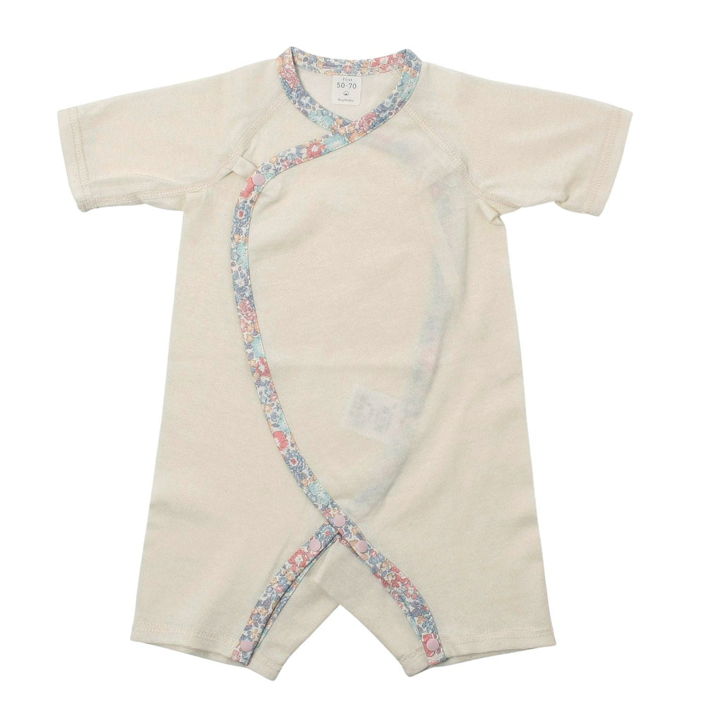 アウター機能を取り入れたコンビオールとして生まれた新しいタイプのコンビ肌着です。特徴はお股のマチを追加することで背中の引っ張りを緩和するとともに、足のスナップボタンの向きを変えて隙間が開きにくくしてあります。また、前を留めるひもをスナップに変えることで赤ちゃんが可愛く、着替えるときのママの手間が楽になりました。