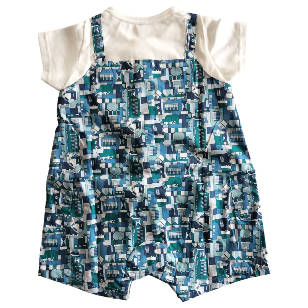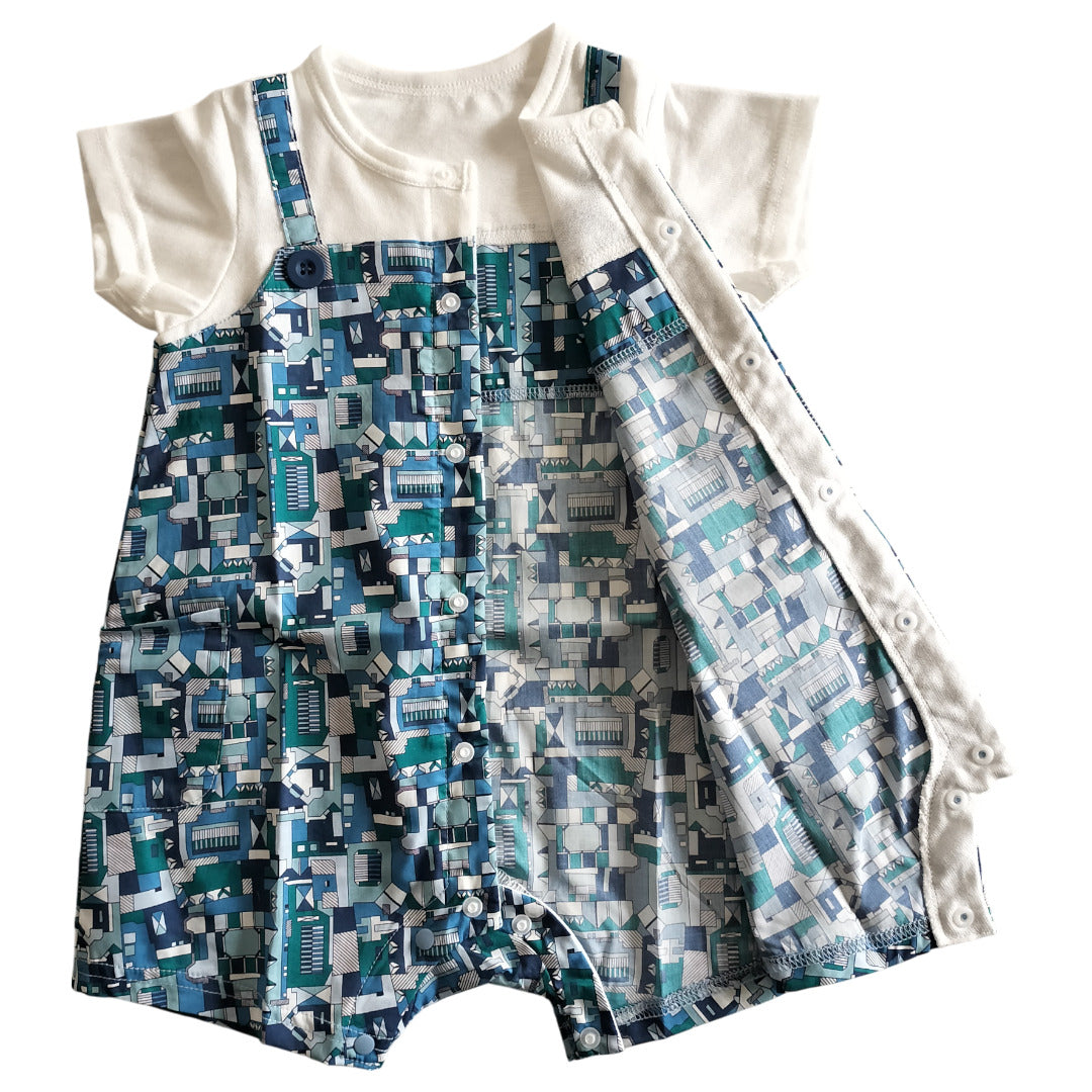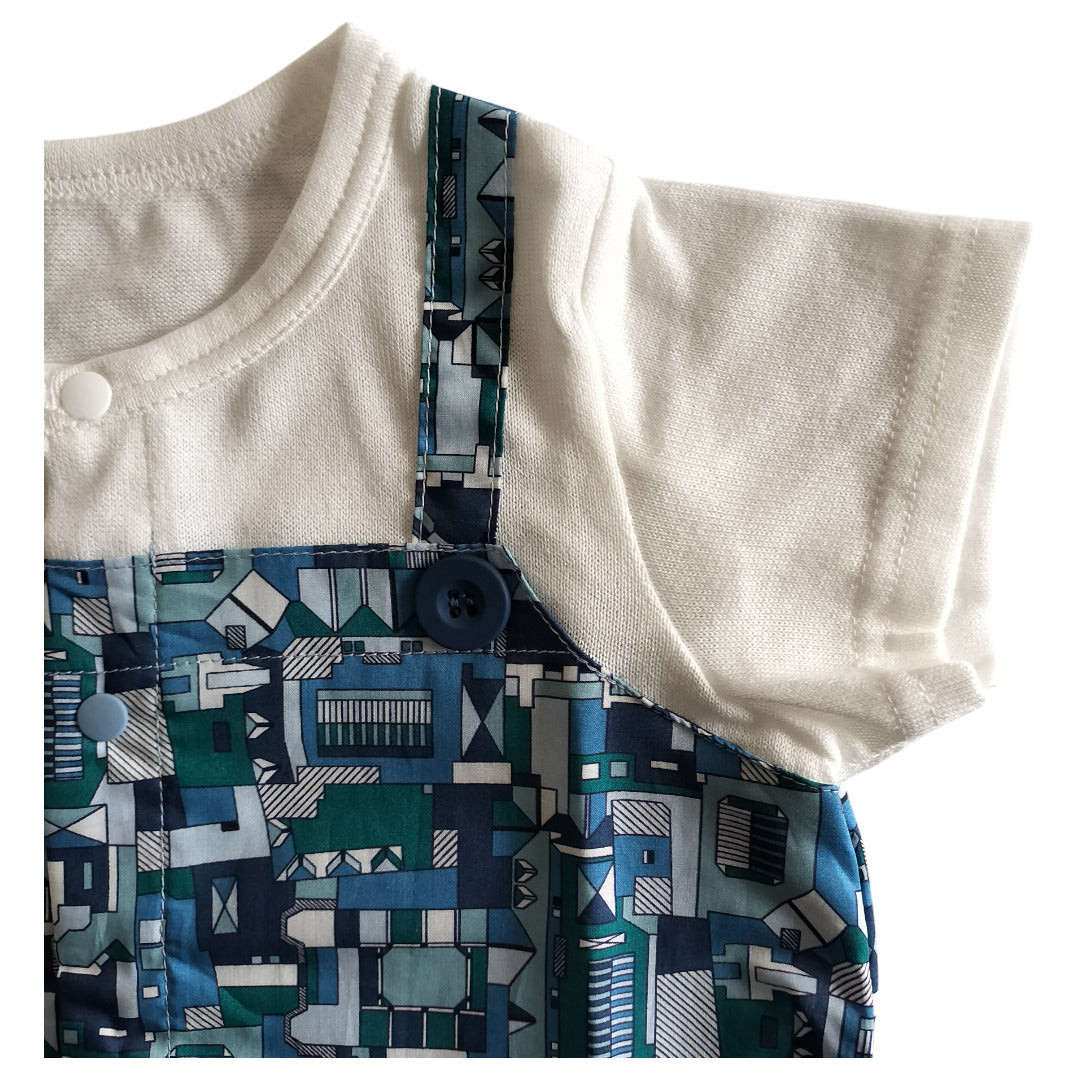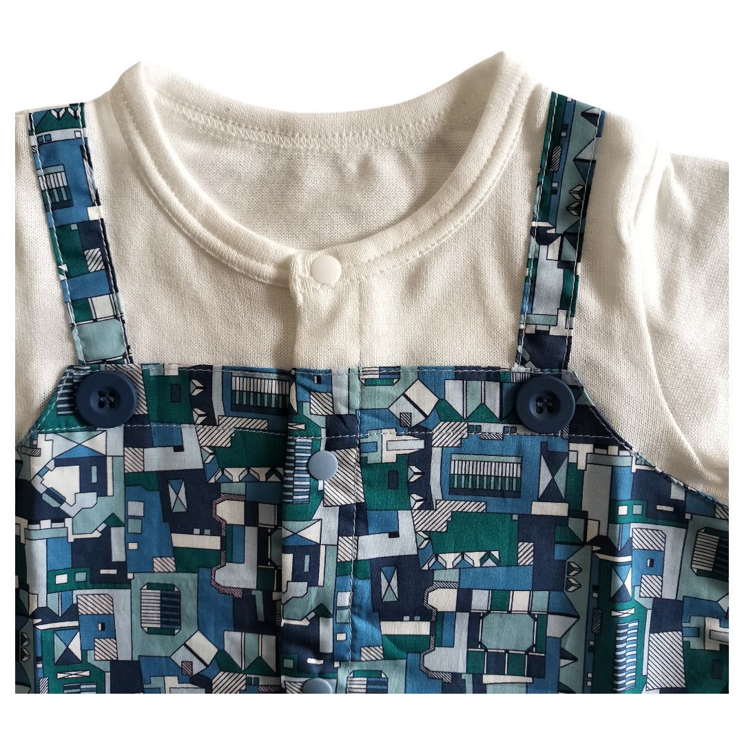 鮮やかなブルーの幾何学プリントが、お子様の個性を際立たせます。 リバティ・タナローンのさらりとした軽やかな生地が、活動的なお子様にも心地よい感触を約束します。