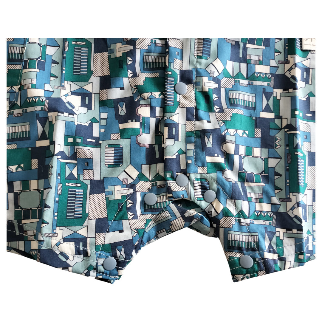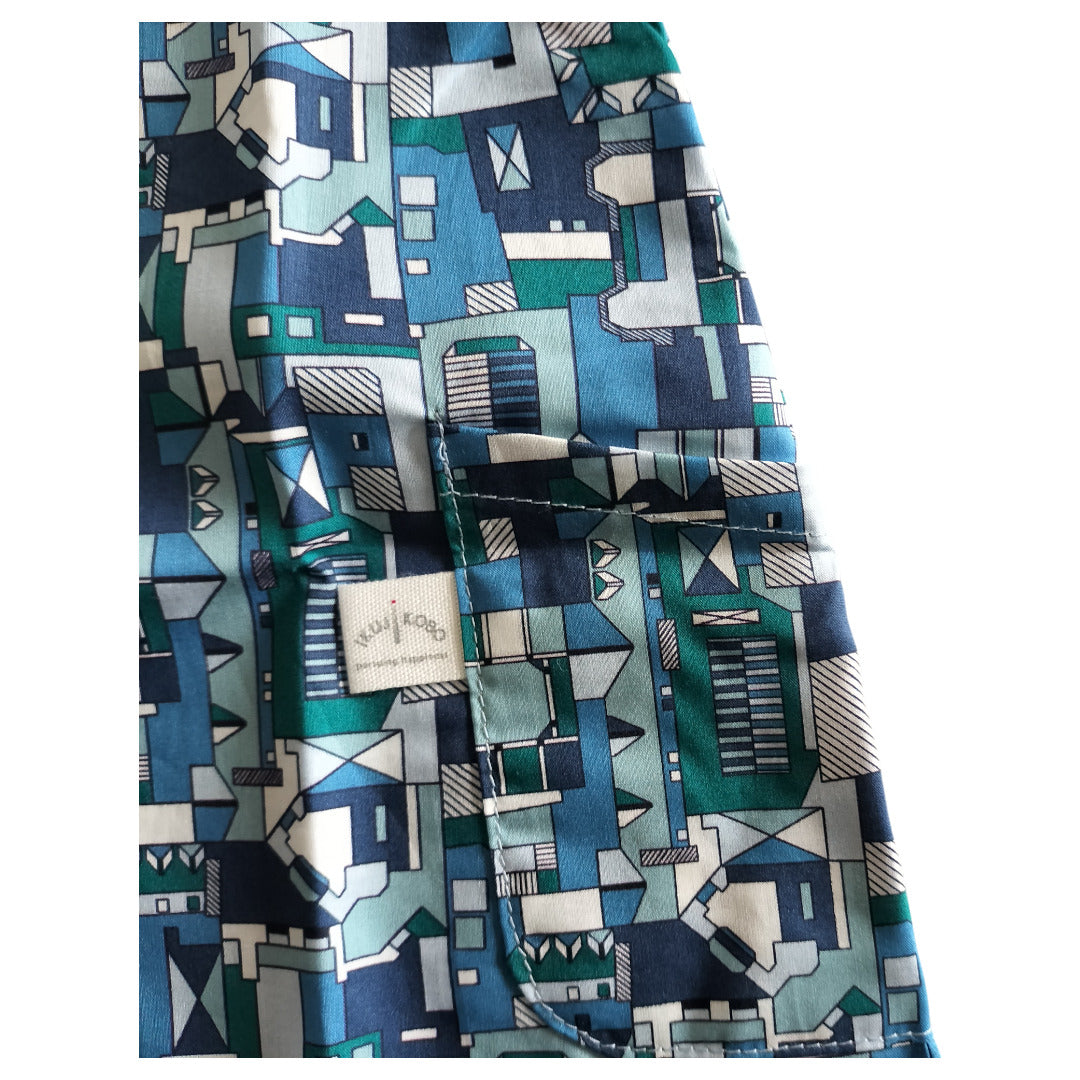丁寧に縫製されたポケットのディテールが、品質の高さを物語ります。 遊び心のある幾何学模様が、小さな冒険家の日々に彩りを添えるでしょう。