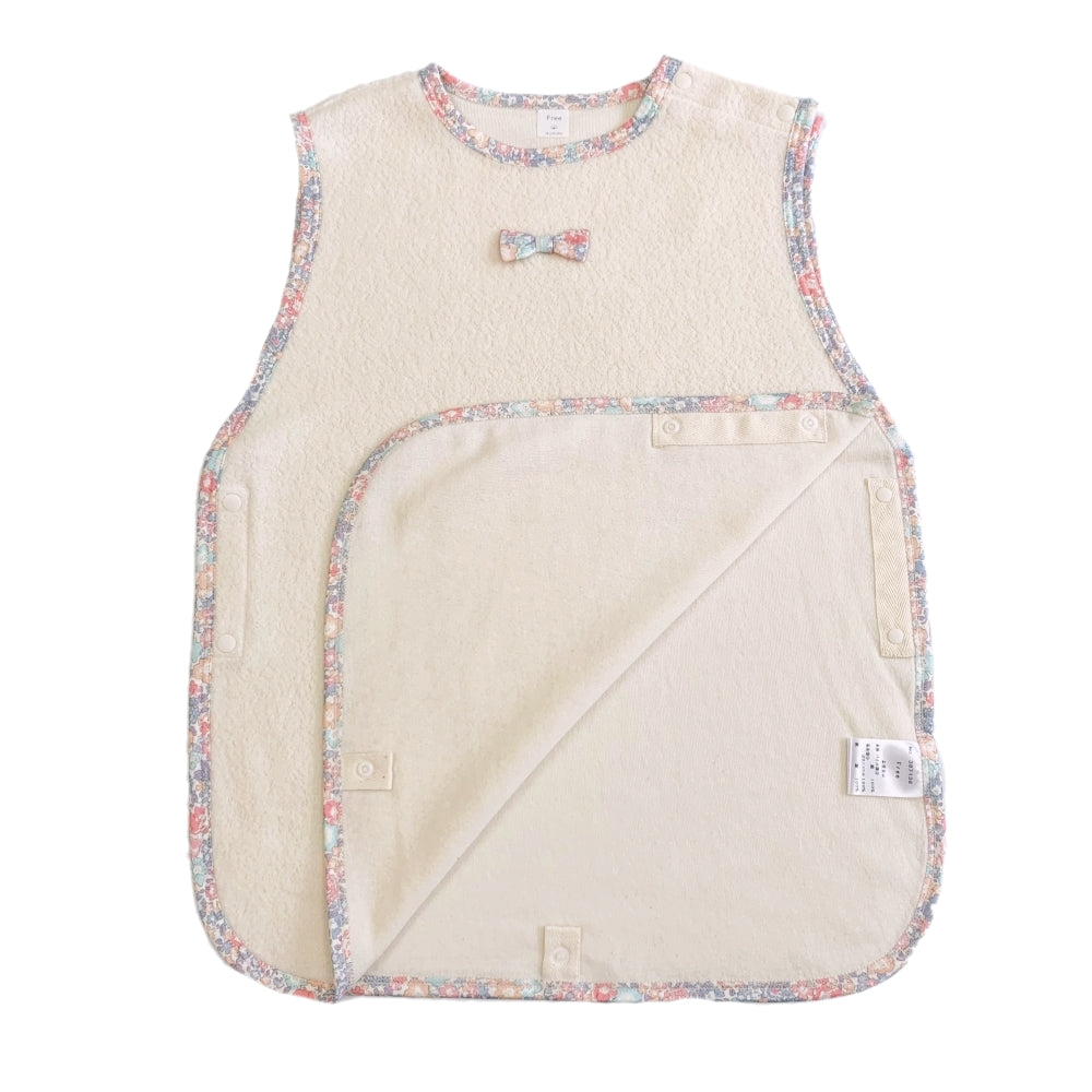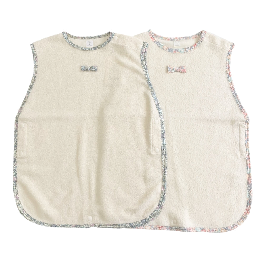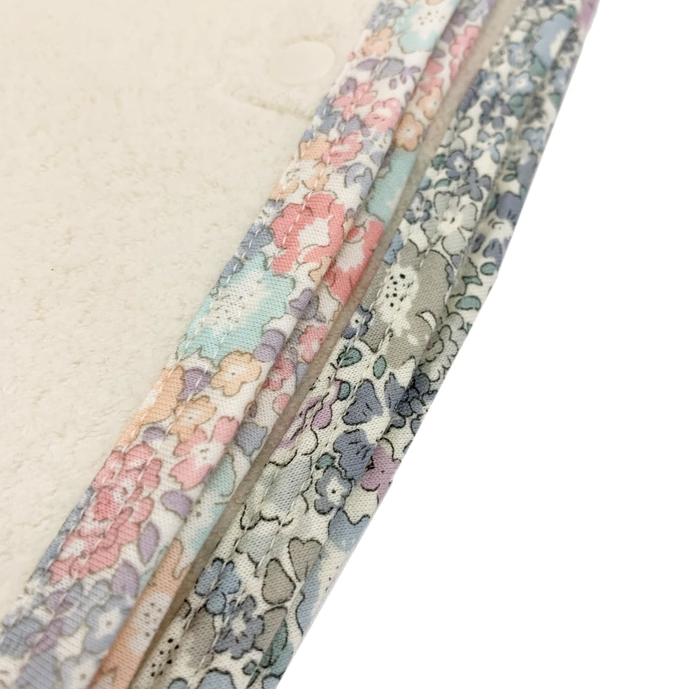 対象年齢が新生児~3.4歳までと長く、リバティのバインダーとリボンがかわいい一枚で出産祝いなどプレゼントしても喜ばれます。